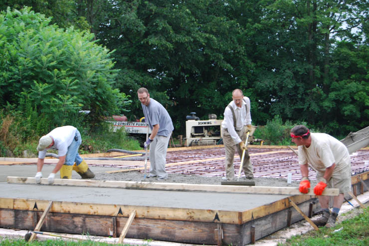 I had fun yesterday at Troy and Christina’s place. Troy let me get in on the cement work for his shop. It was a pretty easy pour – he had all the form-work completely done and he had hired a cement pump truck to get the cement to the parts where the cement trucks couldn’t reach. The guys with the pump truck did almost all the finishing for us, they made it a short day! Five cement trucks came, they poured 46 yards of cement, and we were done by 11 AM. Not bad work, I think.