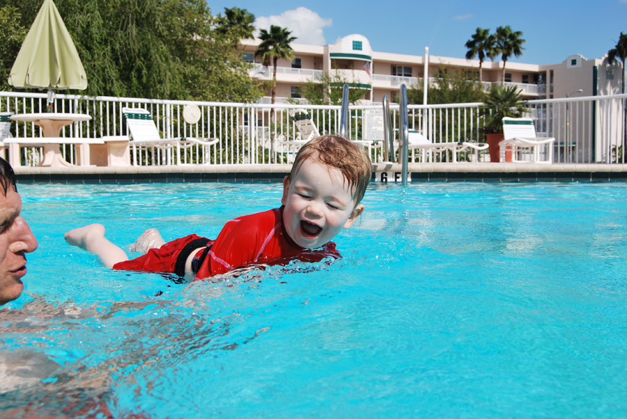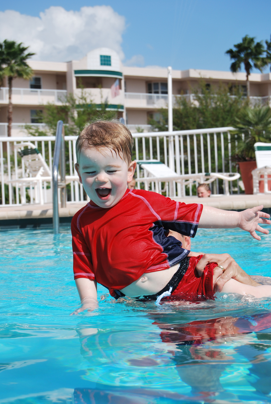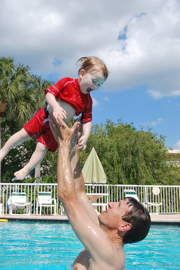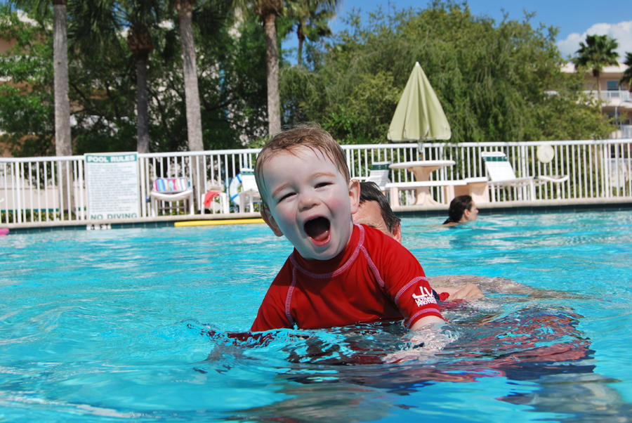After the Aquarium, we went back to Jeff’s parent’s condo. They have a very nice pool and hot tub, and Jan has no fear. He thinks he can be in the pool by himself, so he keeps wanting to jump in. He doesn’t mind going underwater at all, and is pretty good at holding his breath! In any case, he’s fun (though dangerous) in the pool.
