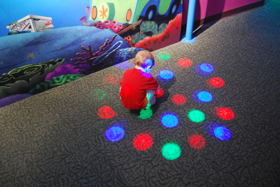 But the funniest of all was when he found a spot where there was a light display and he tried to pick up the coloured dots on the floor. When he figured out that he couldn’t pick them up, he decided they were for dancing and running through – he must have run through, “dancing,” about forty times.