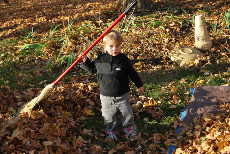 Sweeping leaves is way better than raking.